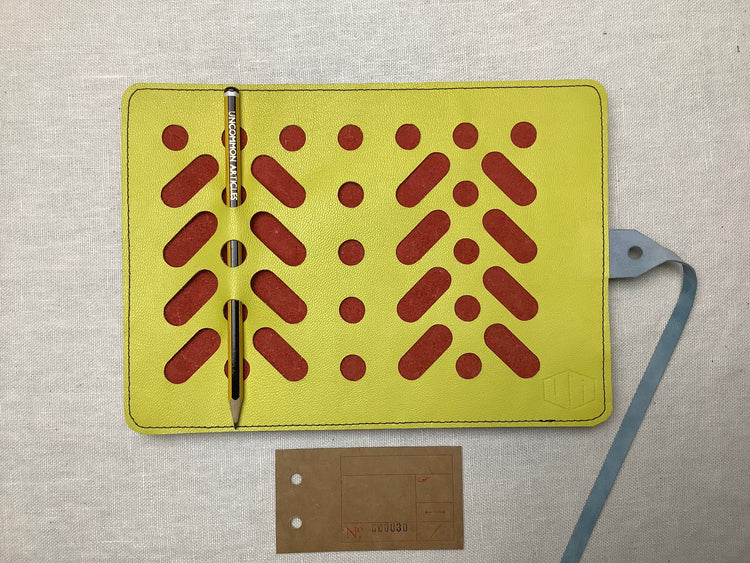 Pencil rolls which feature a herringbone pattern. Larger holes allow storage of...